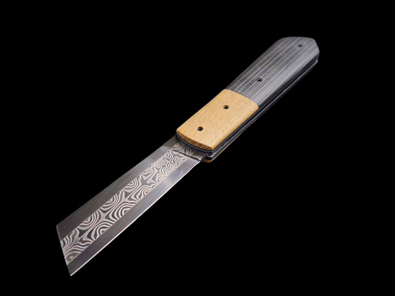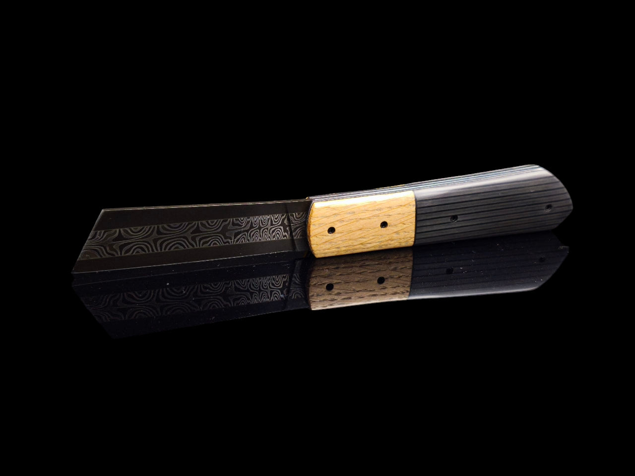 Lame en acier damas carbone réalisé sein de notre atelier (90MCV8, 15N20, Nickel).