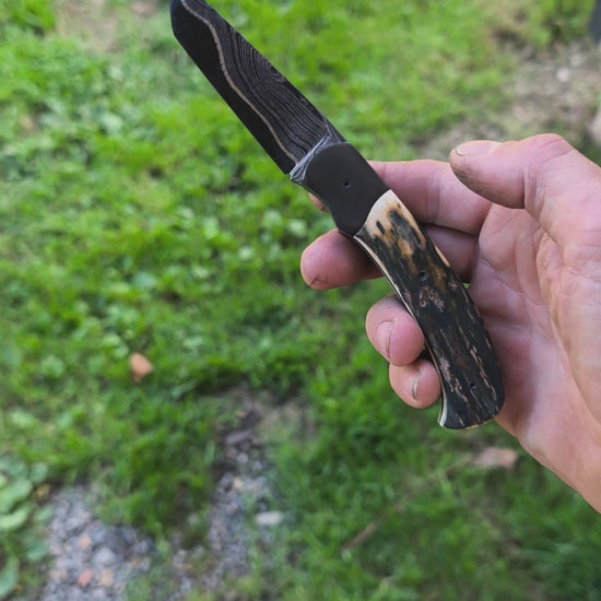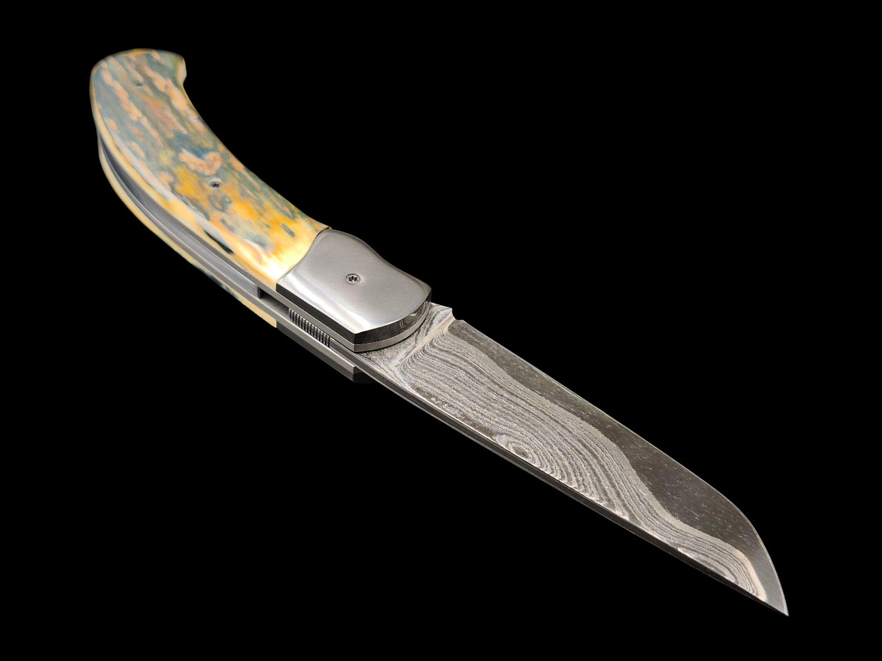 Lame en damas carbone forgé au sein de notre atelier (15n20, 90mcv8, xc75, nickel).
