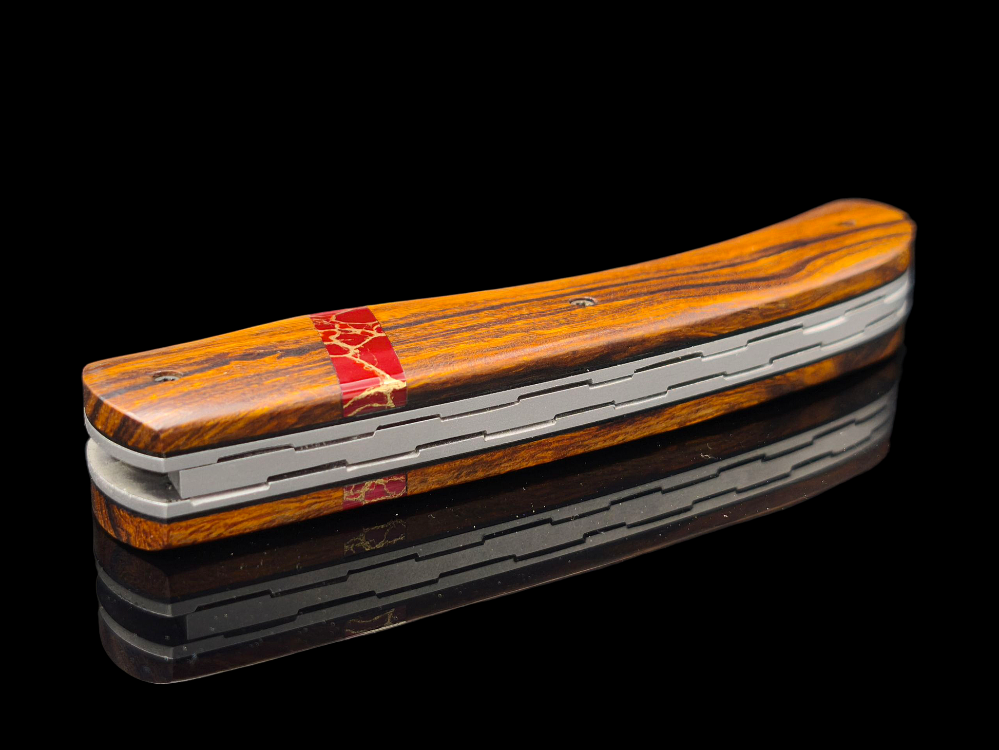 Manche en loupe de bois de fer d'Amérique, Jaspe rouge et fils d'or.