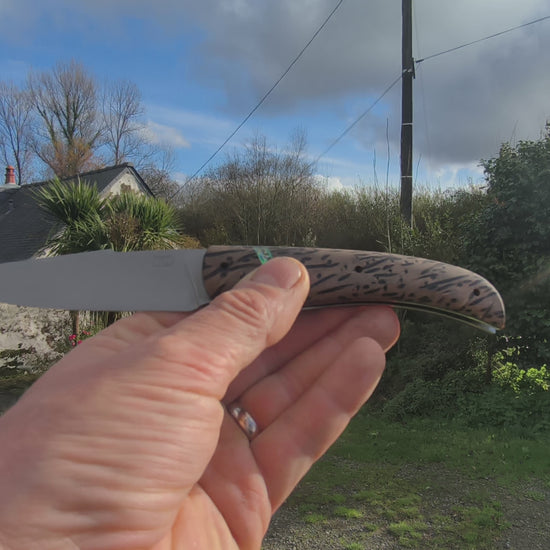 Lame en inox MA5 (très bon tranchant et tenue à la corrosion).