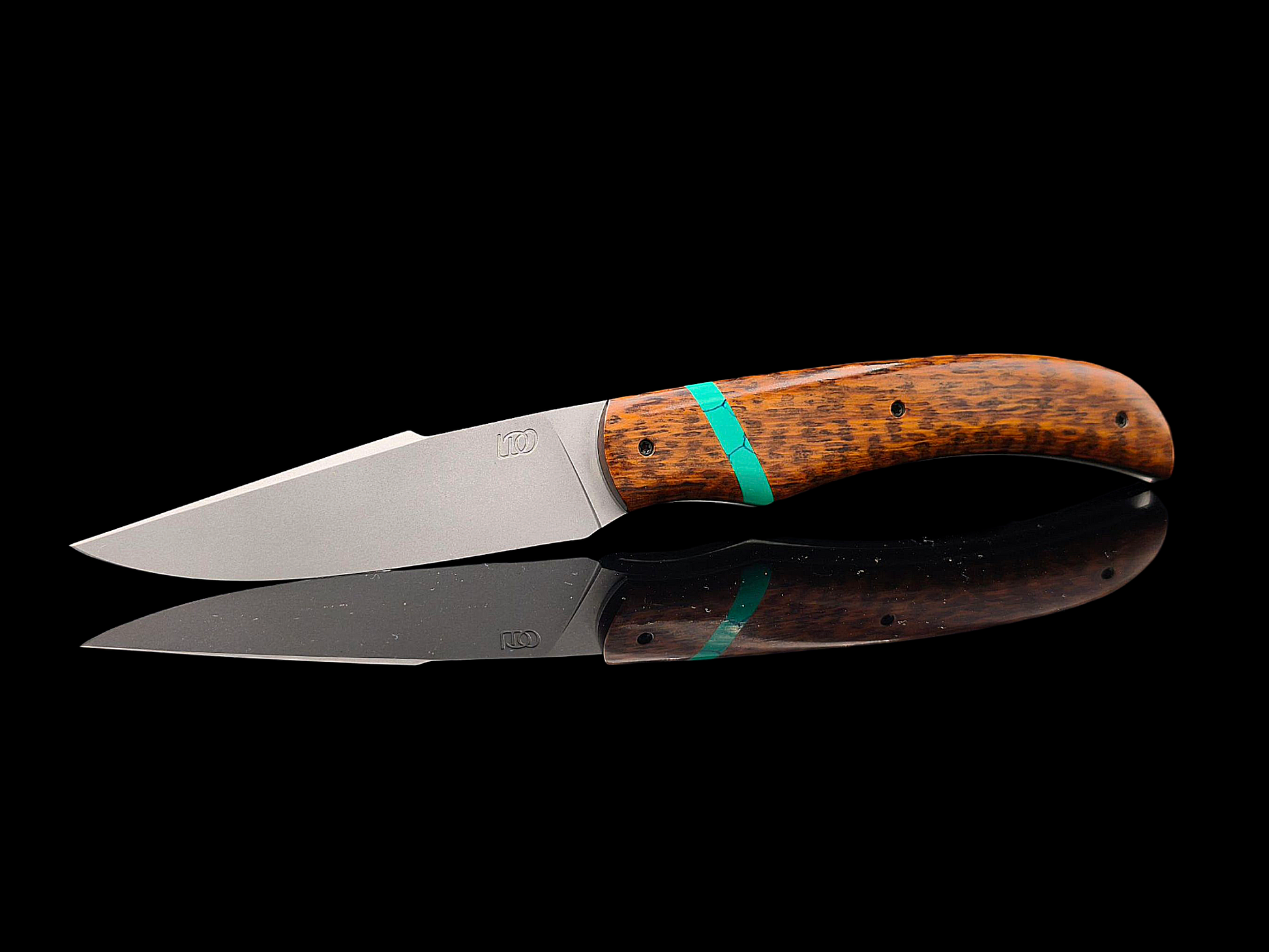 Sa lame en inox microbillé, au fini mat et subtil, exprime la sobriété et la rigueur d’une arme forgée pour durer.