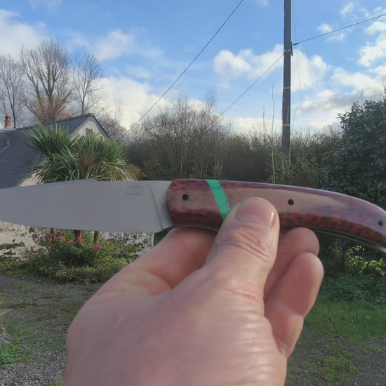 Lame en inox MA5 (très bon tranchant et tenue à la corrosion).